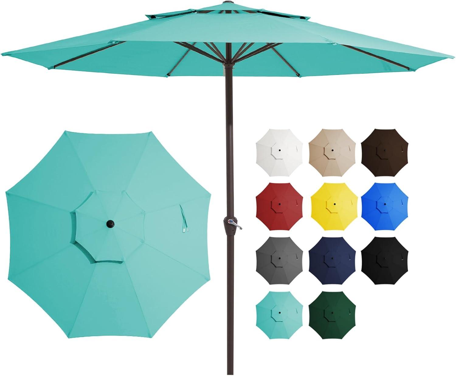 Our experience with the large market umbrella has been nothing short of delightful. The crank lift system made it incredibly easy for us to open and close the canopy, ensuring we could effortlessly adjust it as the sun moved across the sky.We appreciated the durable construction featuring 8 sturdy steel ribs, providing a robust structure that effectively stood up to both wind and rust. Additionally, the premium 100% polyester fabric not only offered an excellent level of UV protection but also showcased a stunning teal color that perfectly complemented our outdoor decor.